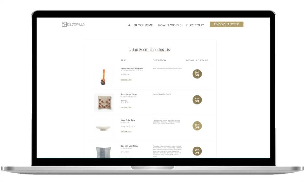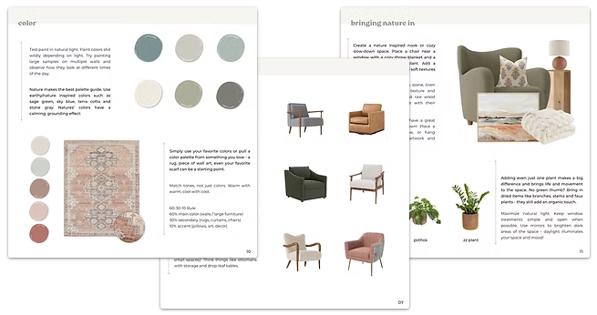 Shop our pre-made designs and receive a digital download of a mood board along with a linked shopping list for easy ordering.