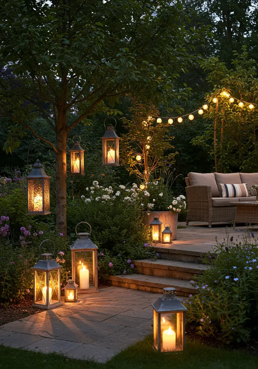 Lanterns provide soft, ambient lighting that enhances the atmosphere of your garden in the evening, making it functional and beautiful after dark.