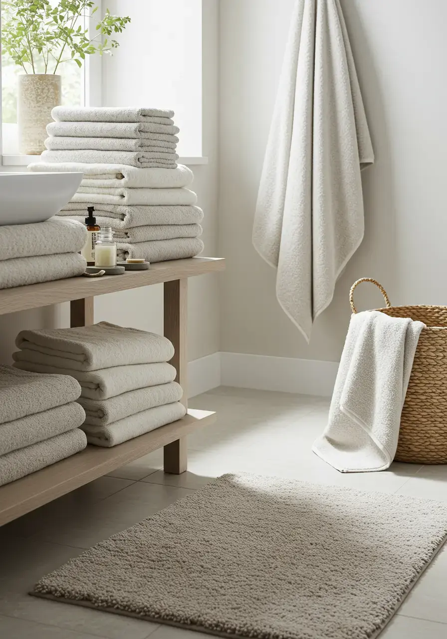 • Invest in high-quality, soft bath towels in a pale or neutral color.