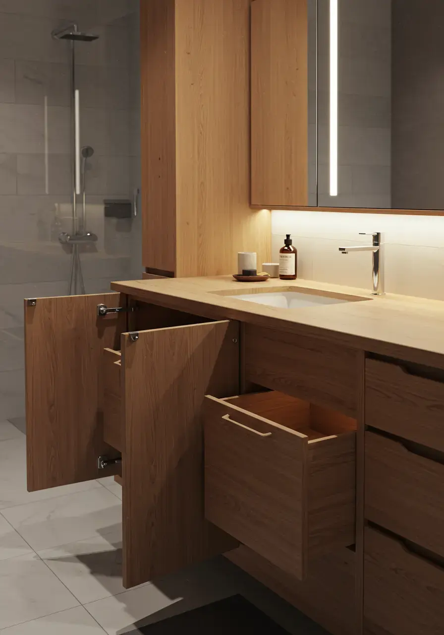 This is perhaps the most fundamental step! Scandinavian style thrives on order and simplicity. A cluttered bathroom immediately feels chaotic and prevents that spa-like feeling. Everything should have a place, out of sight. I used to have bottles all over the counter, and honestly, just clearing them away made a huge difference!