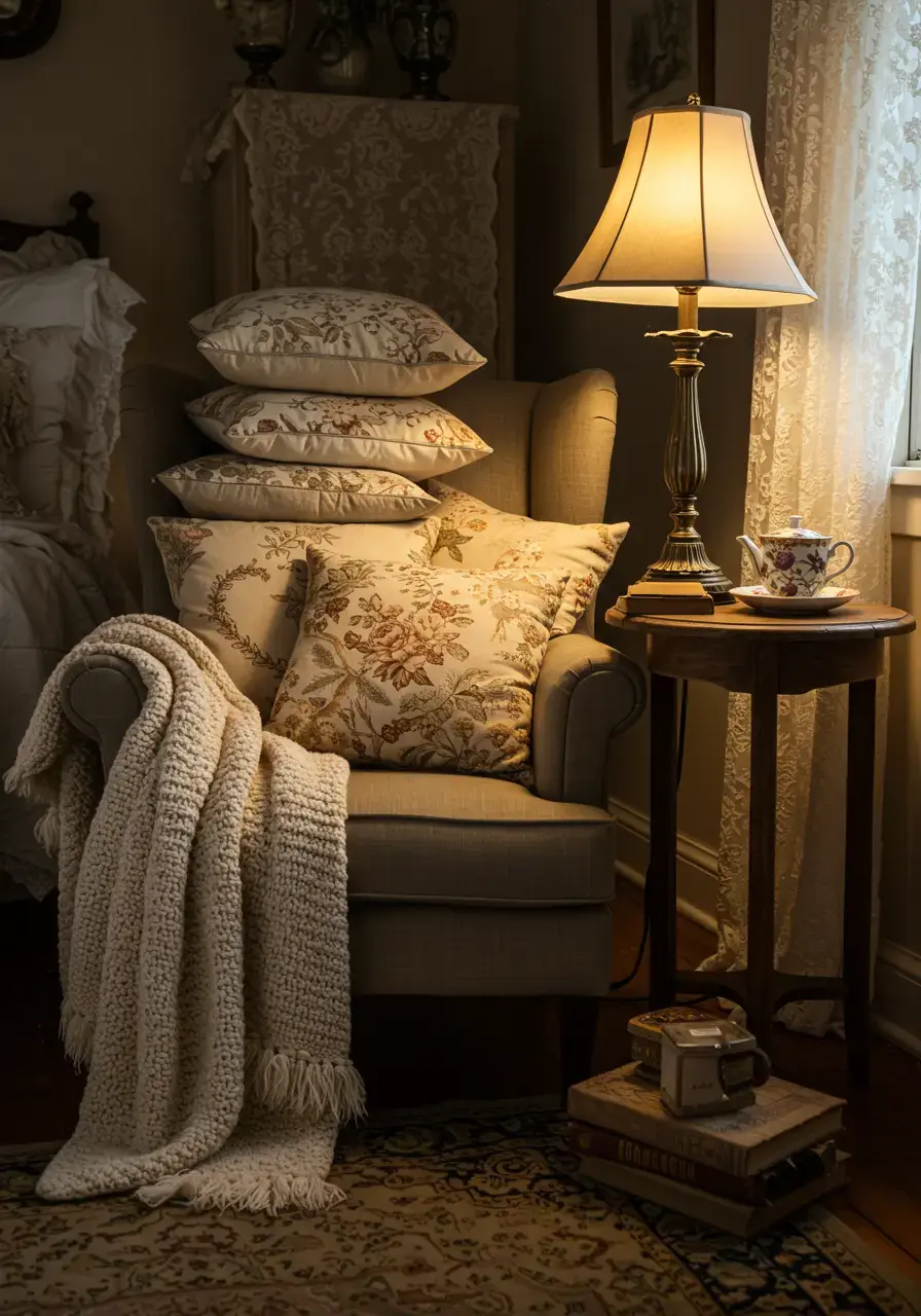 Every romantic bedroom needs a spot for curling up with a good book or just enjoying a quiet moment. A small reading nook adds another layer of comfort and functionality to your vintage space. It could be a cozy armchair in a corner, a window seat piled with pillows, or even just a comfortable stool next to a bookshelf with a good light source. Ensure it feels inviting and aligns with the overall romantic vintage bedroom style.