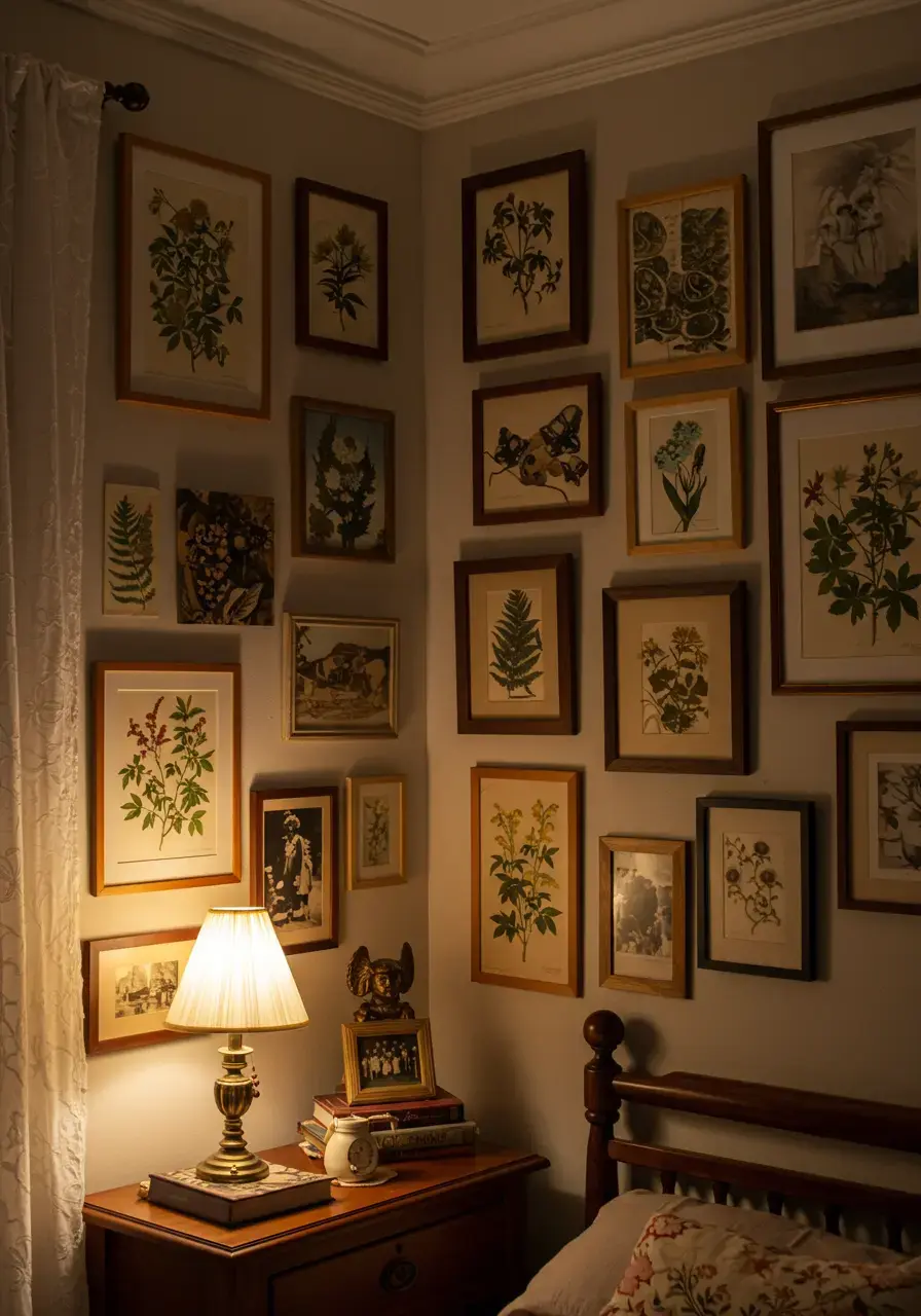 The art on your walls tells a story, and for a vintage bedroom, I love pieces that feel personal and a little bit whimsical. Think botanical prints, framed postcards, old family photos (even if they aren’t your family!), or delicate illustrations. It’s less about matching everything perfectly and more about creating a collection that feels curated over time. I often pick up vintage art at antique shops and frame them myself.
