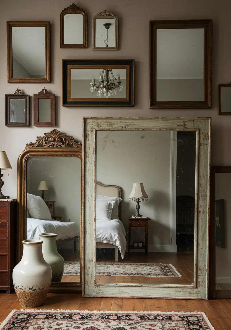Antique mirrors are pure magic in a vintage bedroom. They don’t just serve a practical purpose; they add light, make the room feel bigger, and have this beautiful, slightly aged patina that screams vintage charm. Whether it’s a large floor mirror, a collection of smaller framed mirrors, or a mirror with a decorative frame, they add a touch of elegance and history. I recently added a small, round antique mirror above a dresser, and it instantly elevated that corner.