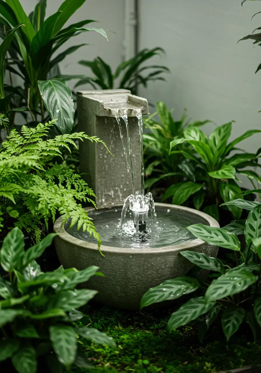 • Place the water feature strategically near plants that appreciate higher humidity, like ferns or calatheas.