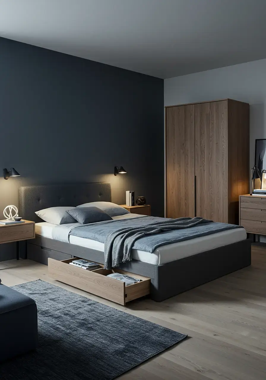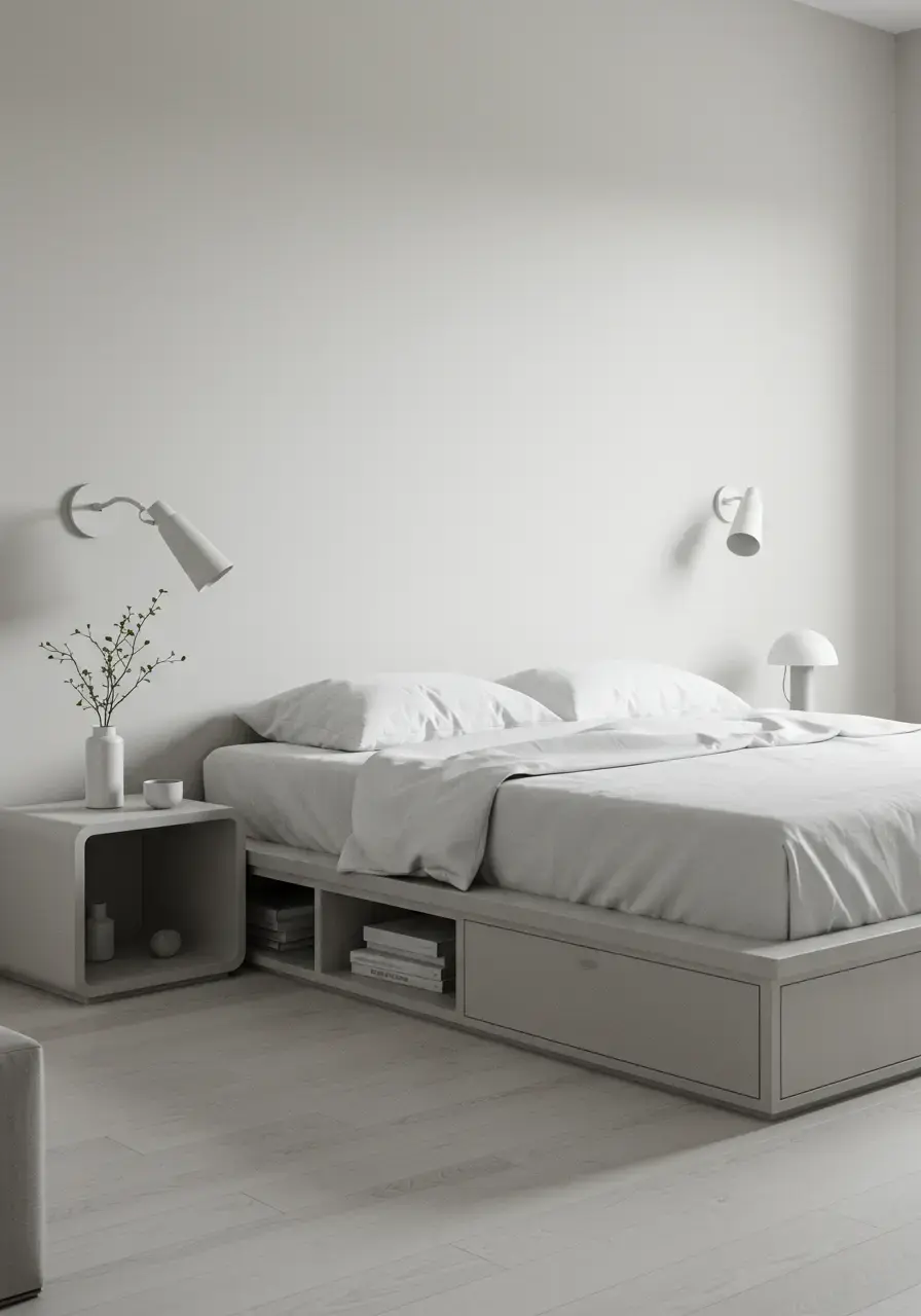 • Opt for a bed frame with a streamlined, low-profile design, possibly with integrated storage.