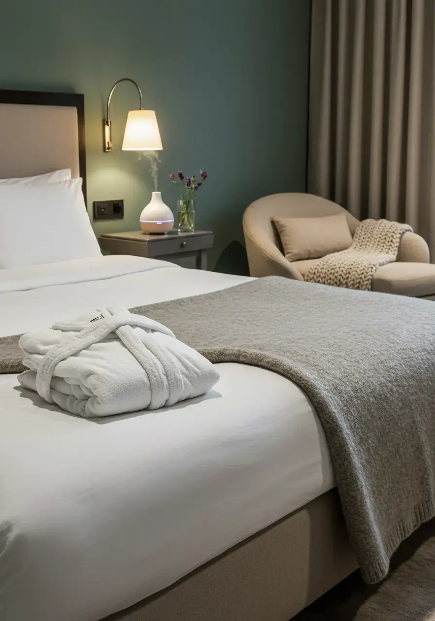 • Incorporate soft, luxurious textures like high-thread-count sheets, cashmere throws, and plush bathrobes.