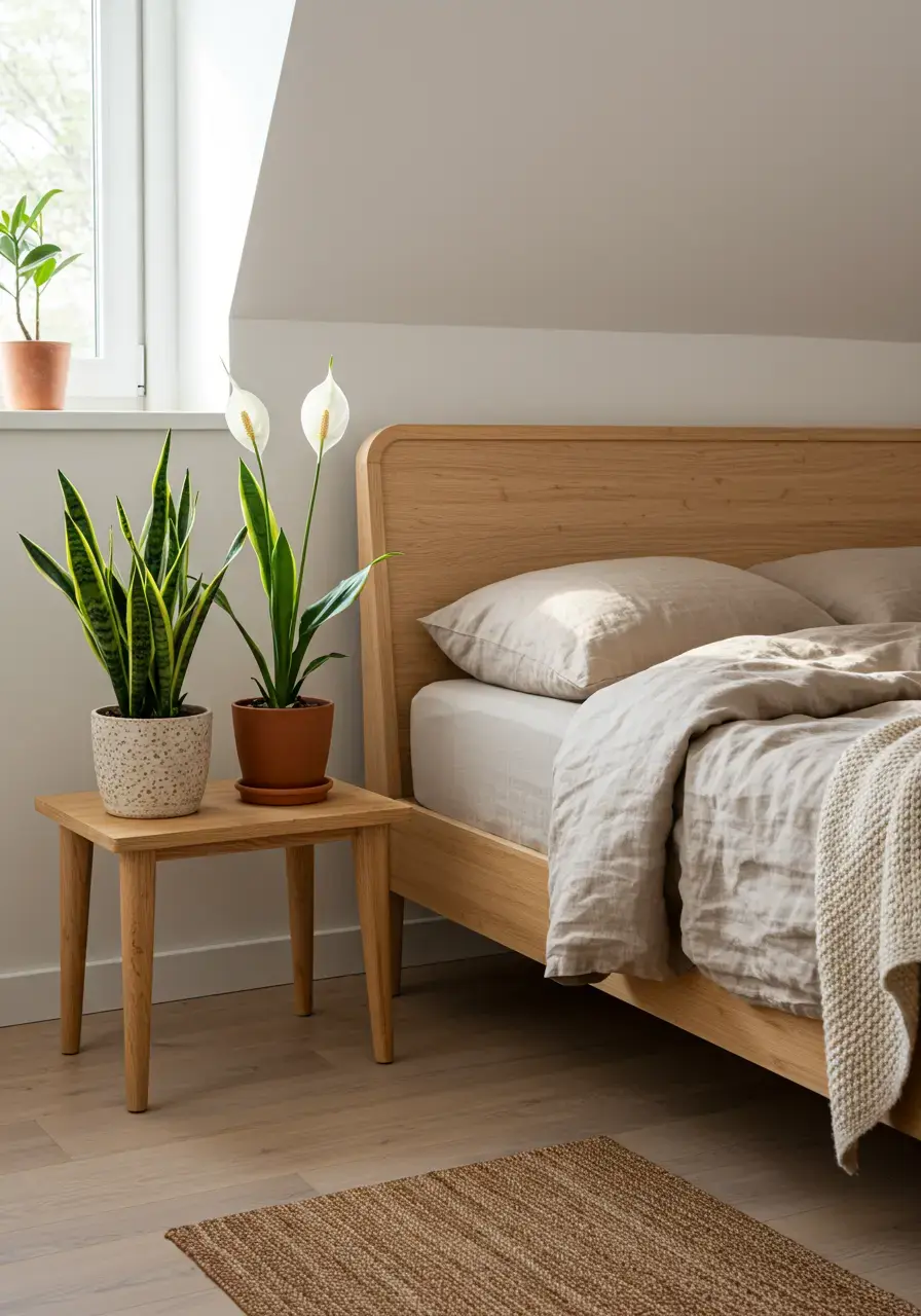 • Place a few easy-care houseplants like a snake plant or a peace lily in decorative pots.