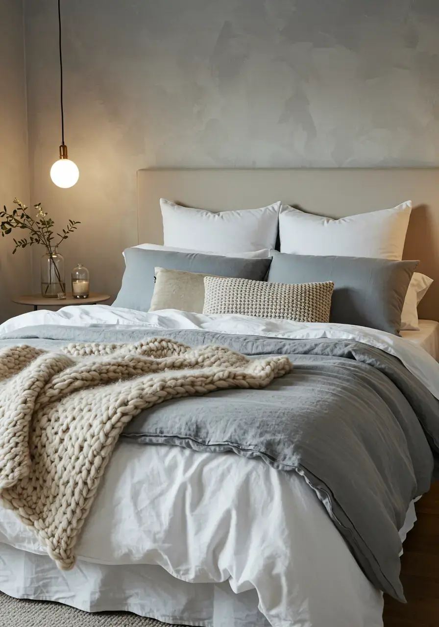 Layering textiles adds warmth, depth, and softness, creating a tactile and visually appealing environment that promotes comfort and relaxation for sleep.