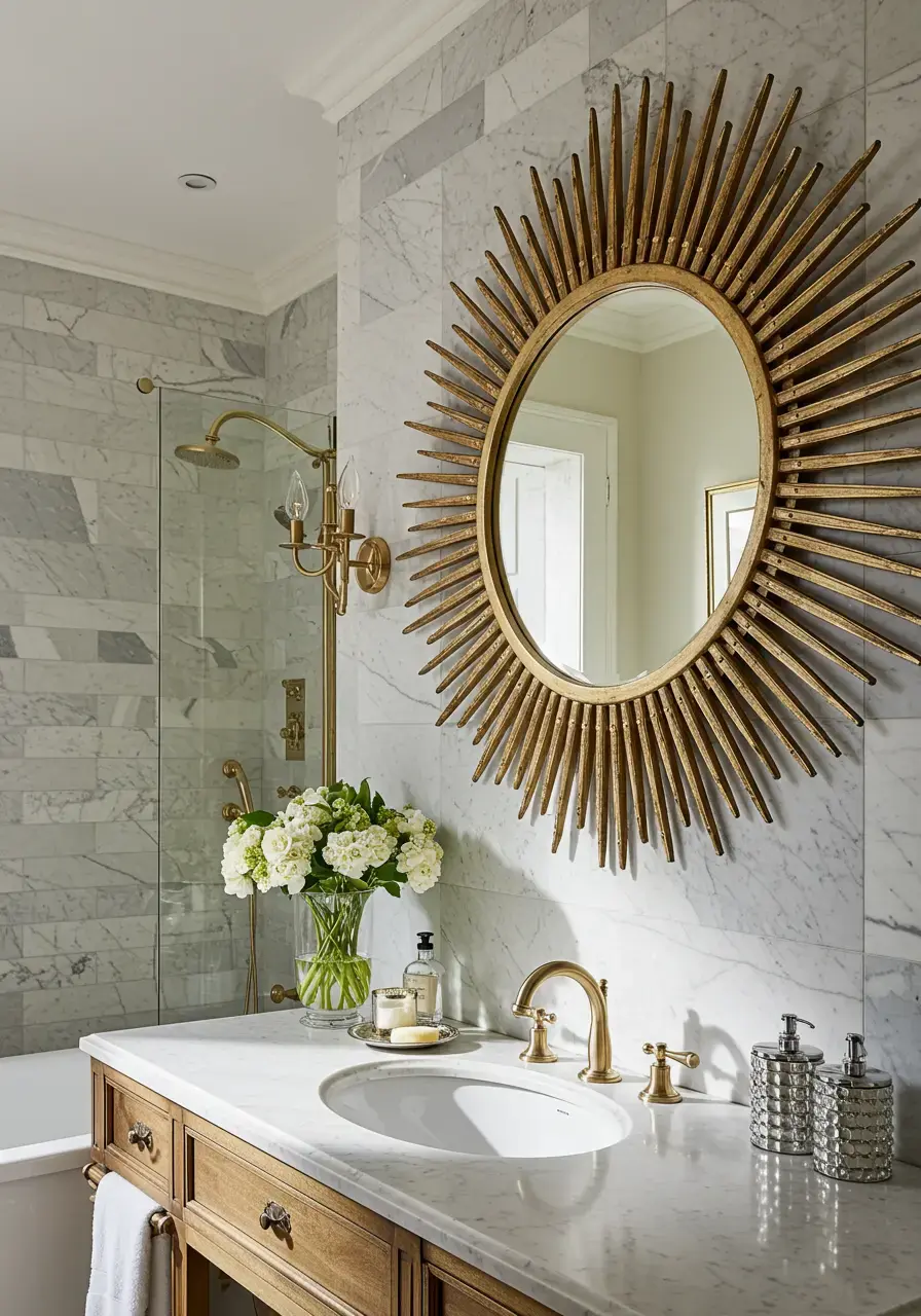 Add a statement mirror for your glam bathroom look