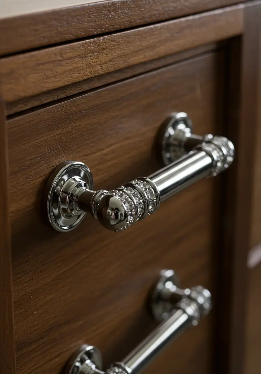 • Choose hardware with interesting shapes, patterns, or crystal or glass details.