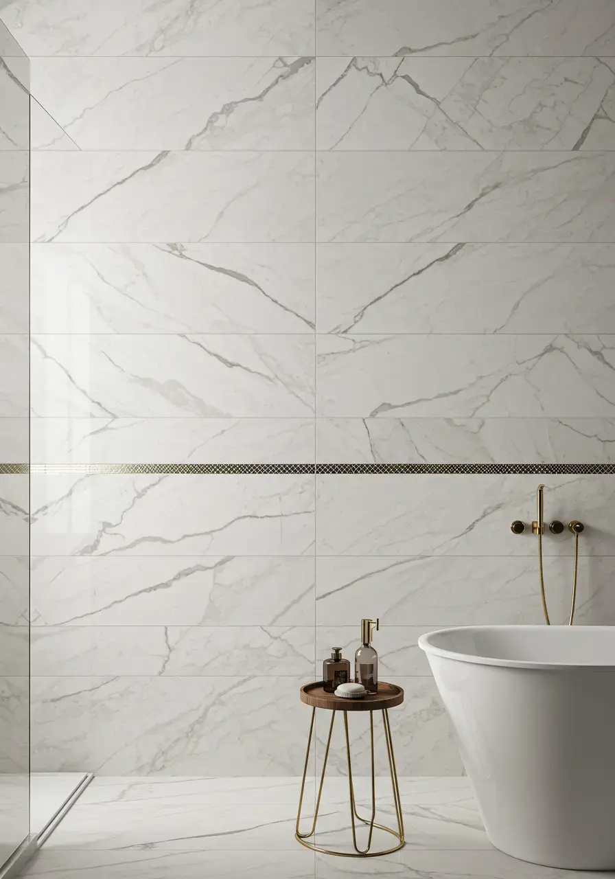 • Explore options like marble, large-format porcelain tiles mimicking natural stone, mirrored tiles, or tiles with metallic accents.