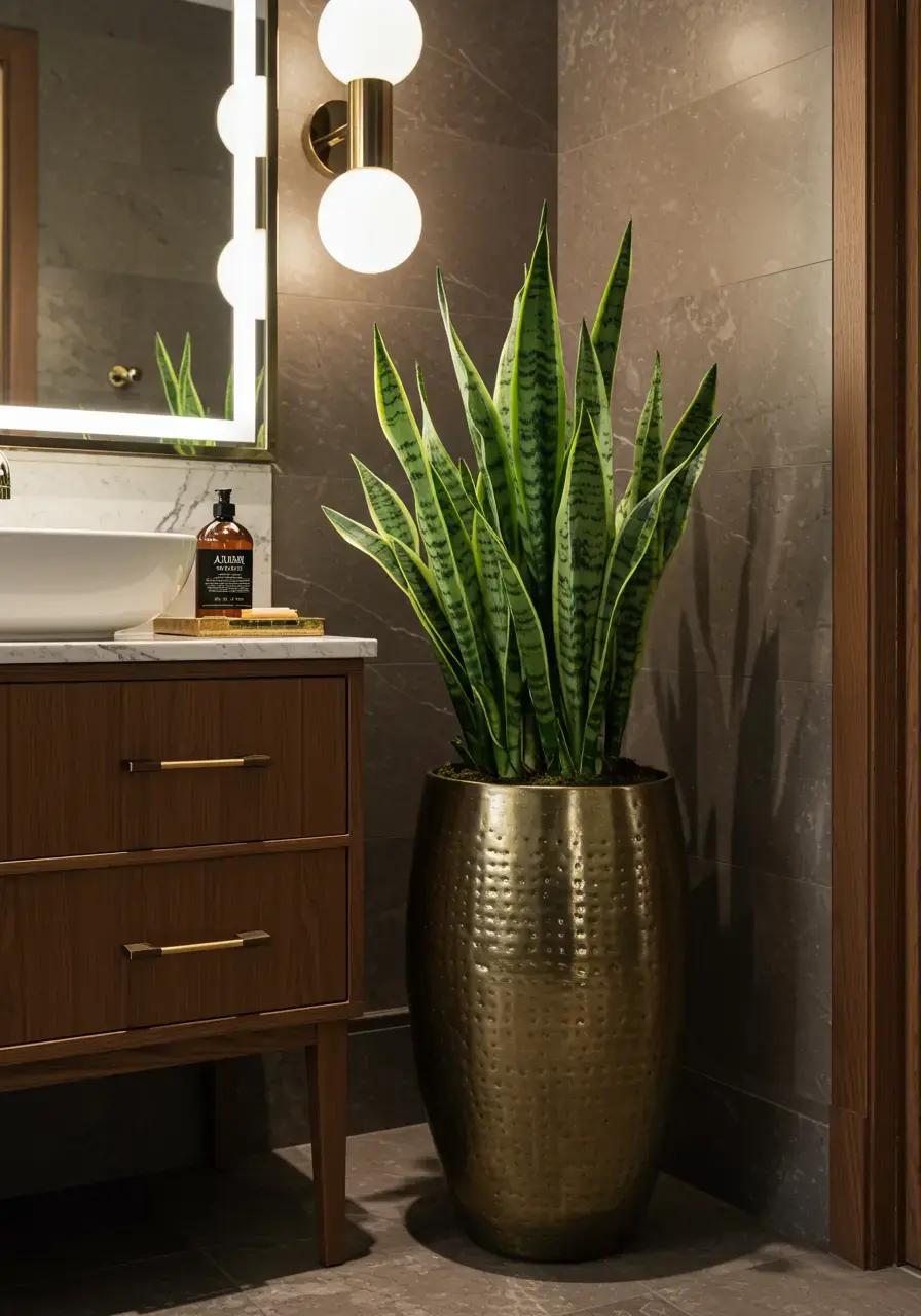 • Choose plants that do well in high humidity and low light, like snake plants, ZZ plants, or ferns.