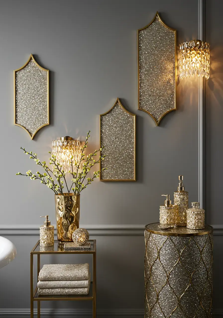 Incorporate metallic accents for a glam bathroom feel