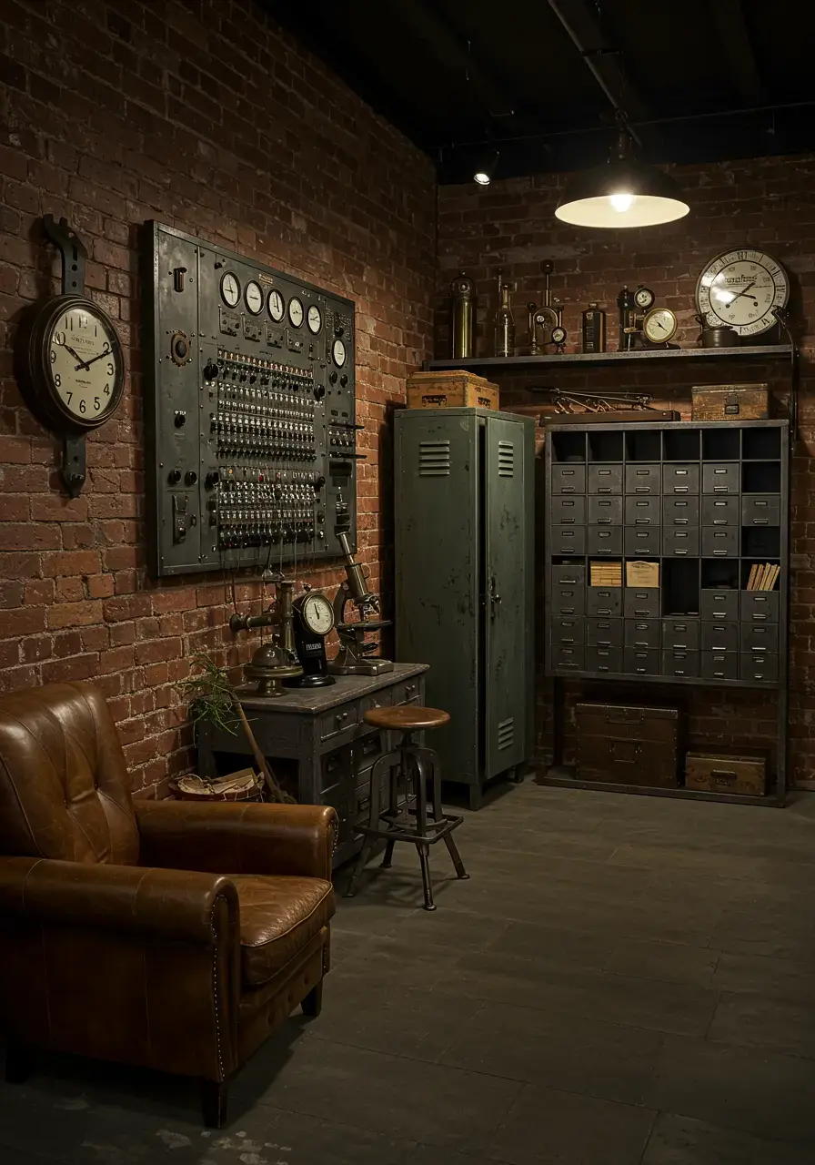 • Source old factory clocks, switchboards, or scientific instruments to display on shelves or walls.