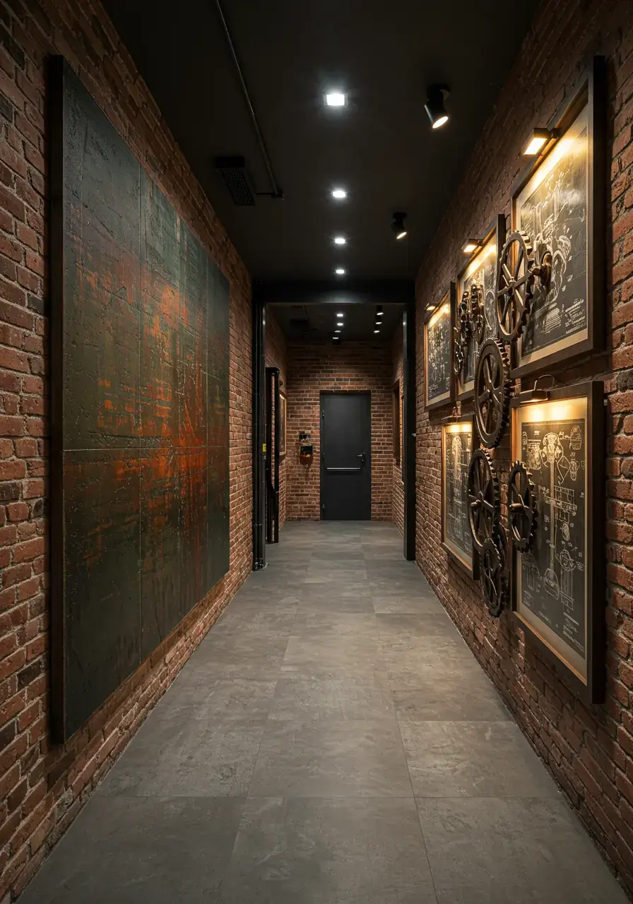 I adore gallery walls – they’re such a personal way to tell a story and add personality. For an industrial hallway, it’s all about infusing that rugged, utilitarian charm into your display. Instead of just hanging pictures, think about how metal can play a starring role. It’s about that balance between the softness of personal photos and the sturdy, unyielding nature of industrial materials. This creates a visually arresting feature that immediately catches the eye.