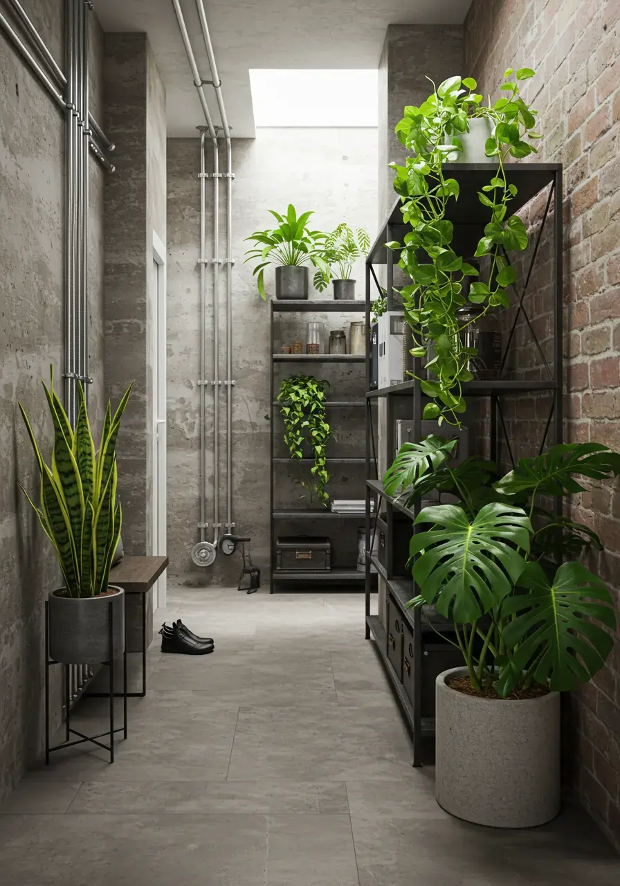 Industrial Hallway Plant Decor for a Touch of Greenery