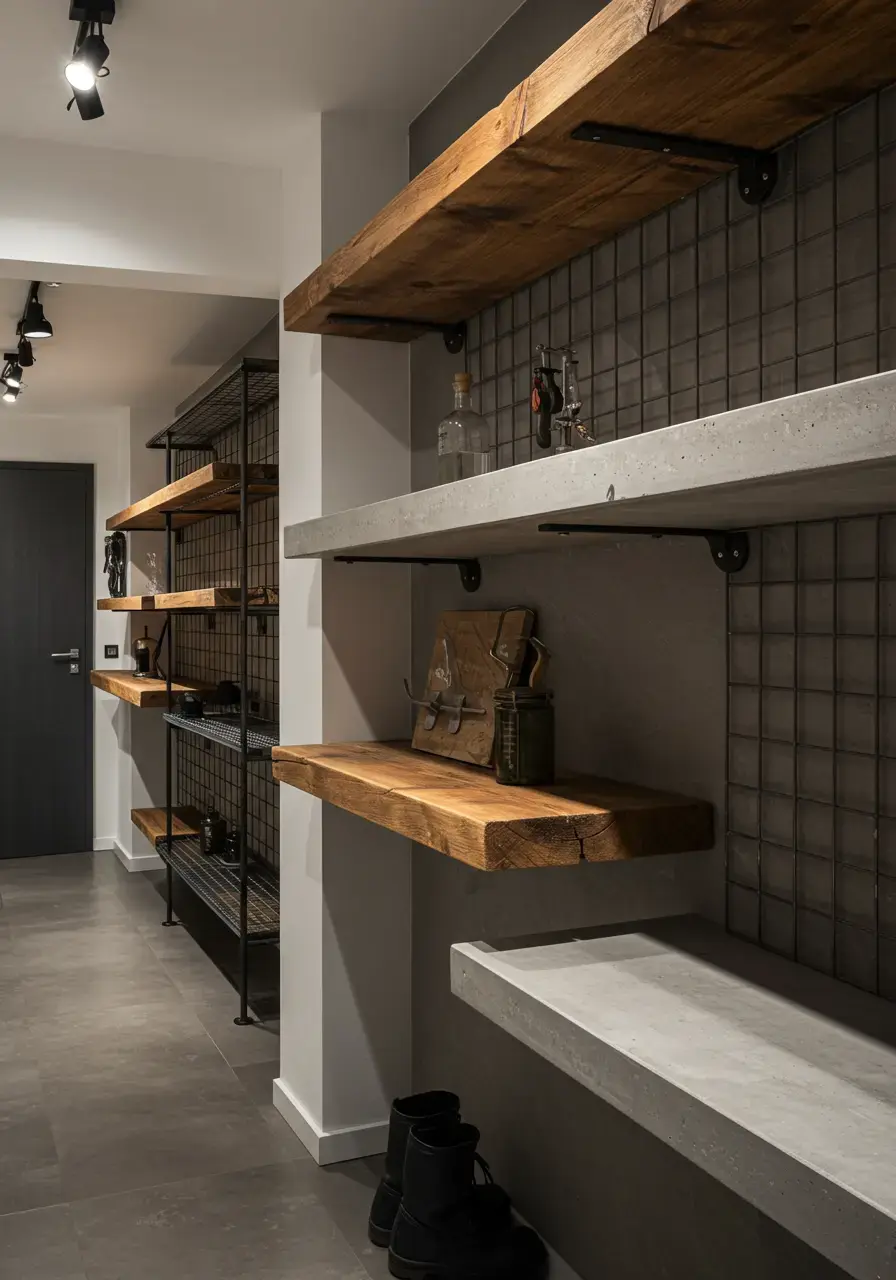 Raw Edge Industrial Hallway Shelving Ideas for Storage