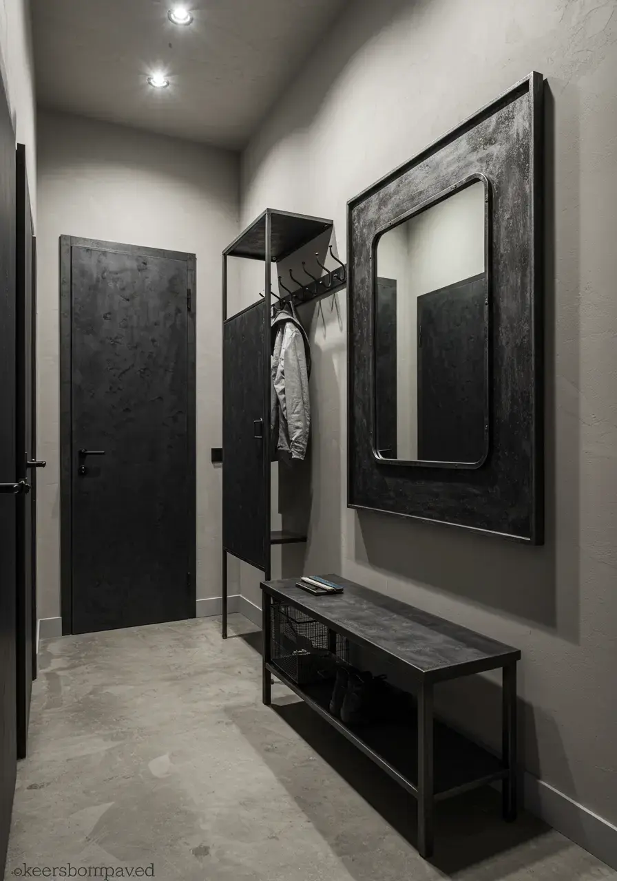 These tips maximize space, create the illusion of openness, and ensure that a small hallway still maintains a strong and cohesive industrial aesthetic without feeling cluttered.