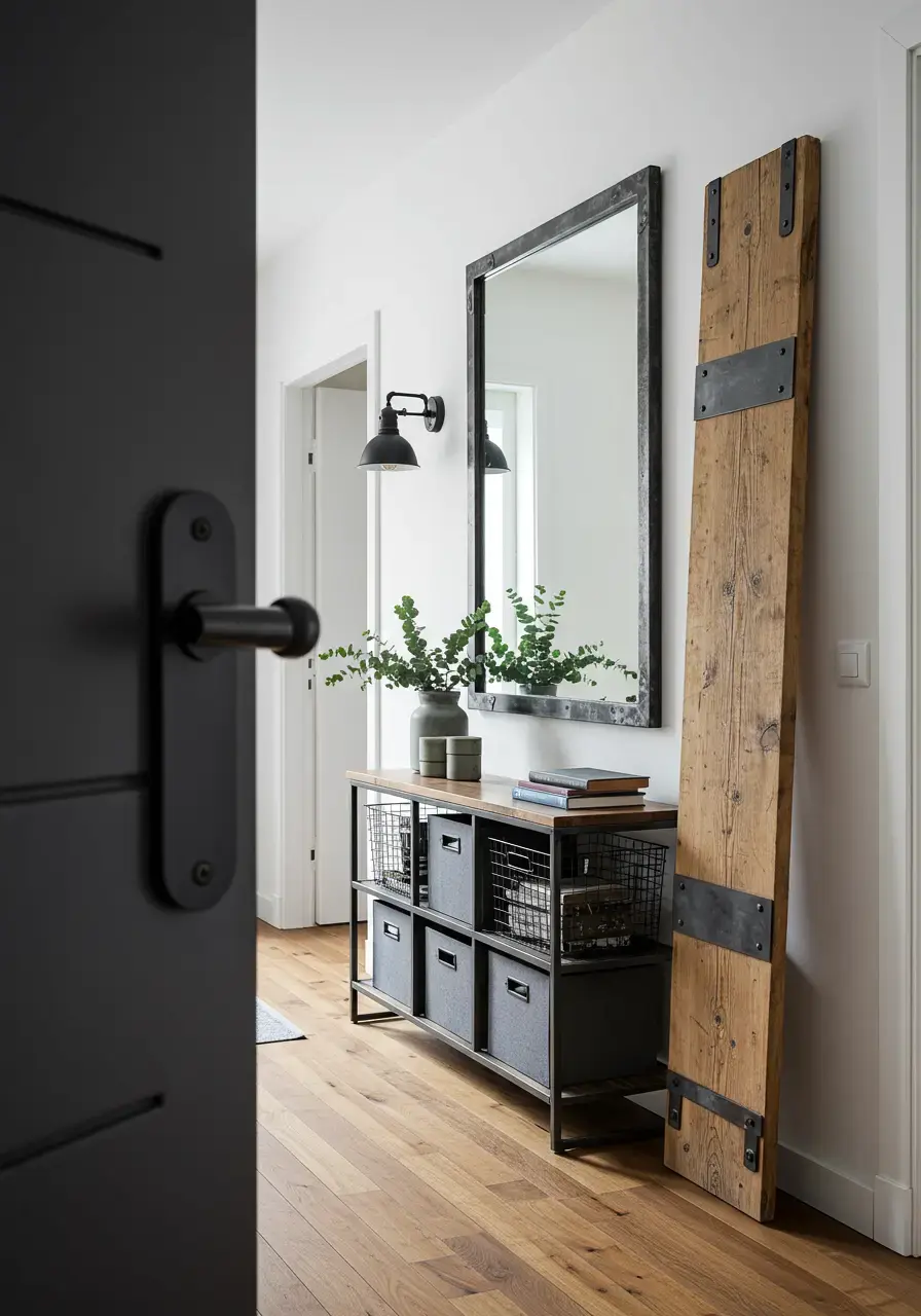 Repurposed materials add unique character, introduce authentic historical textures, and embody the ‘raw edge’ spirit of industrial design, making your hallway truly one-of-a-kind.