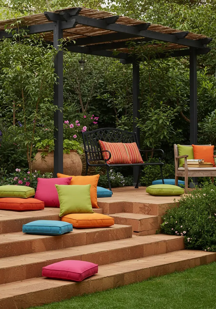- Define the space with low walls, potted plants, or a pergola.