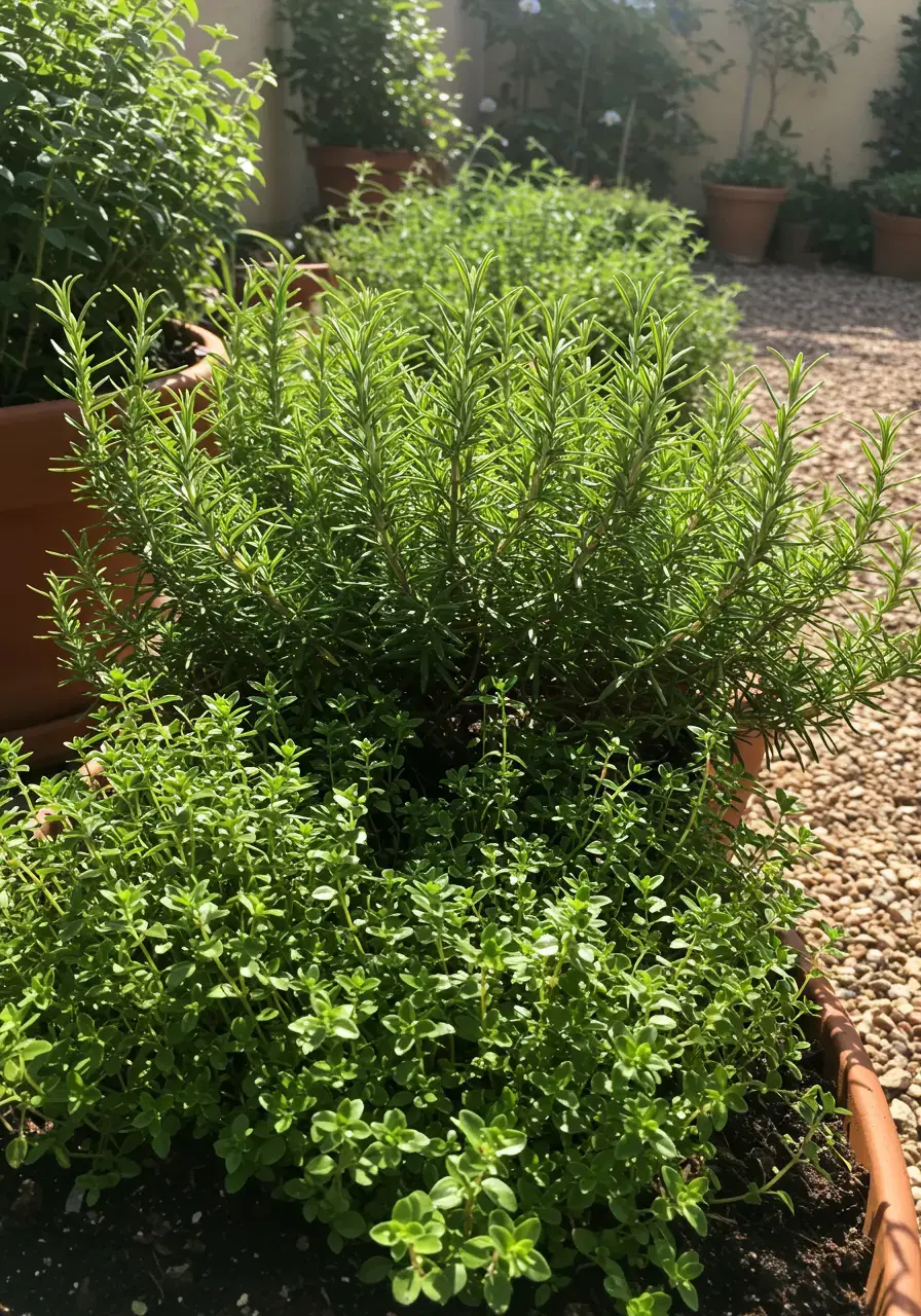 - Plant rosemary, thyme, lavender, oregano, and basil in pots or directly in the ground.