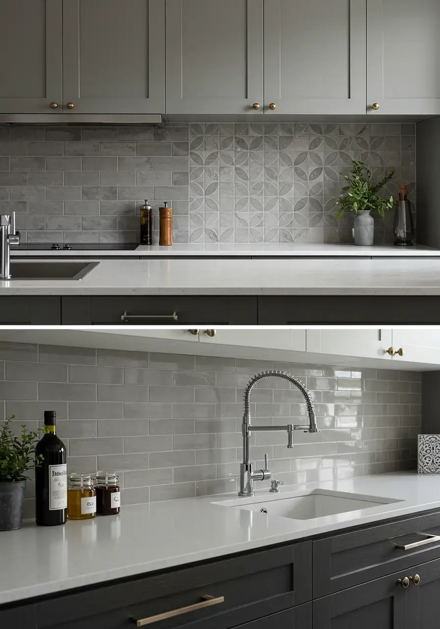 - Explore different colors and patterns that complement your chosen cabinetry and backsplash.
