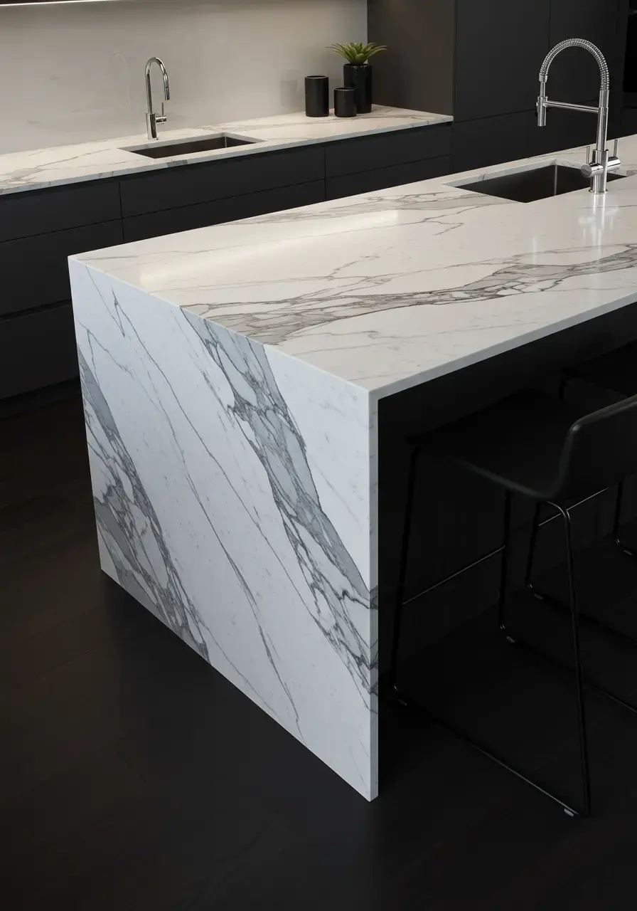 - Explore waterfall countertop designs for a dramatic, modern look.