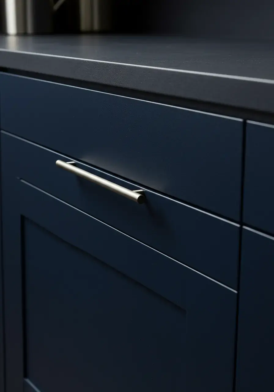 - Opt for slim bar pulls, discreet finger pulls, or handleless cabinets.