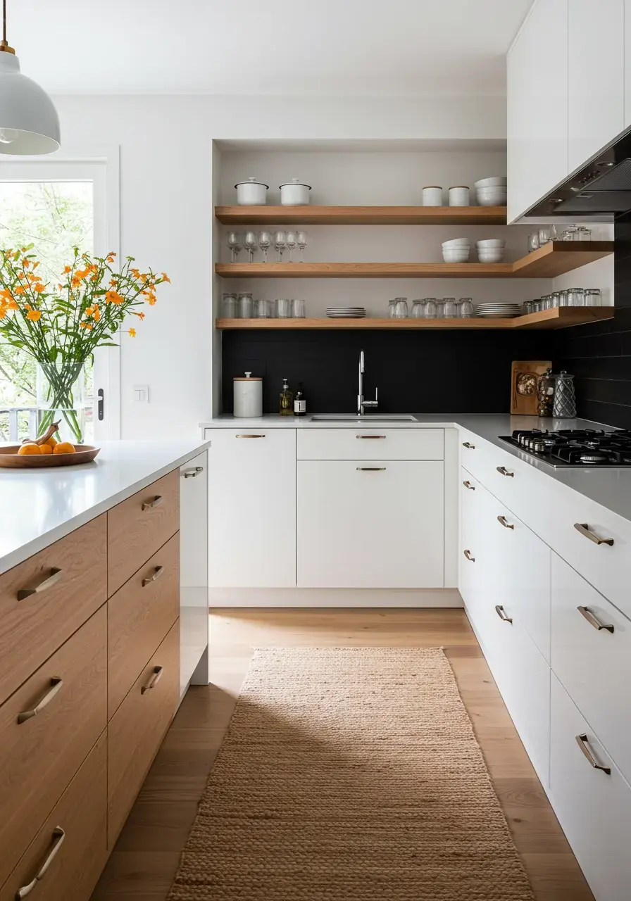 Open shelving isn’t just for displaying pretty dishes anymore; it’s a functional design element in contemporary kitchens. It breaks up the visual weight of upper cabinets and allows you to showcase items you use frequently or those with personal meaning. I love using a mix of open shelves and closed cabinets.