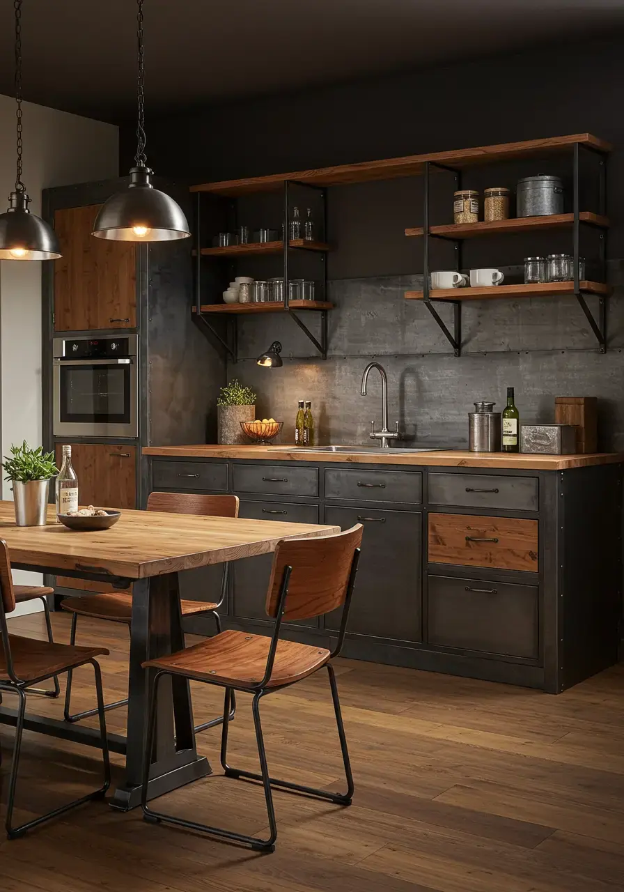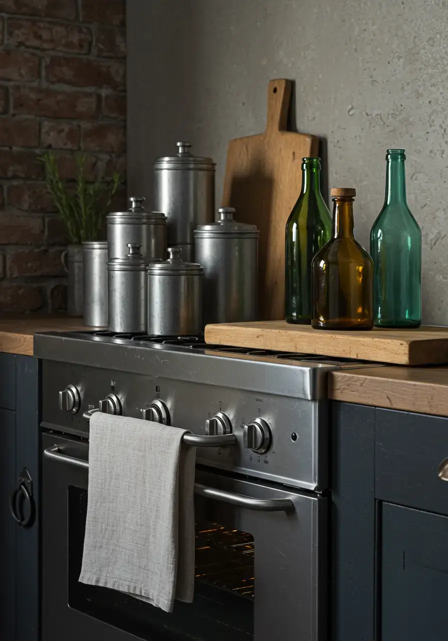 Metal is non-negotiable in an industrial kitchen. It brings that utilitarian feel and a touch of shine. Don’t be afraid to mix different types of metal – it adds depth and visual interest.