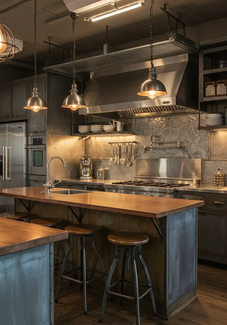 Lighting is huge in any space, and for industrial kitchens, it’s key to creating that specific mood. Think function first, but with a cool edge. Exposed bulbs, metal shades, and simple shapes are your friends.