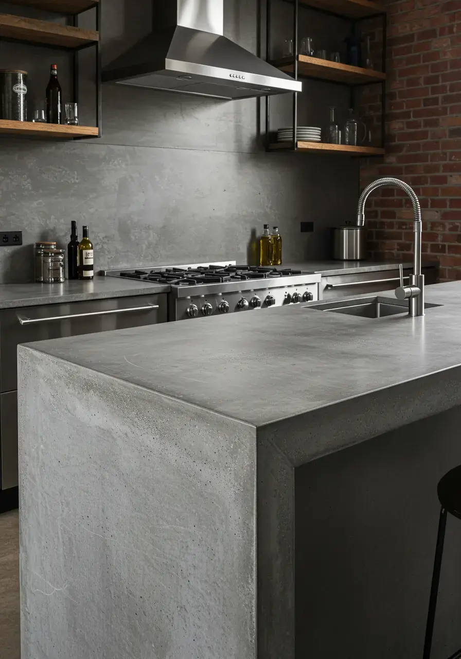 Concrete adds a solid, grounded feel and a unique texture. It’s incredibly durable and easy to maintain, perfect for a busy kitchen.