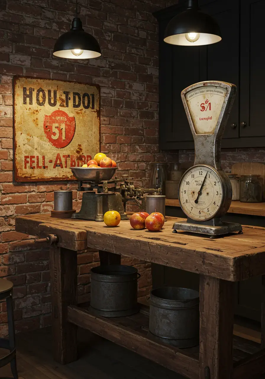 - Search for old metal signs, industrial clocks, or vintage scales.