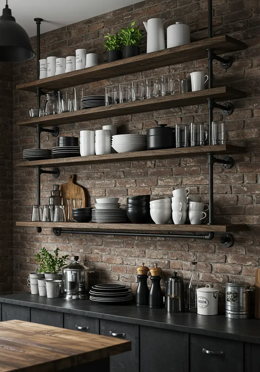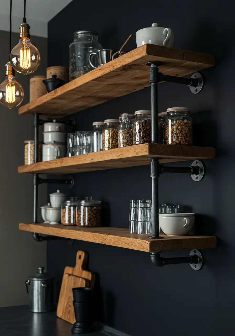 Closed cabinets can feel a little traditional. Open shelving is a hallmark of industrial style. It keeps things accessible and lets you display some of your favorite kitchen items.