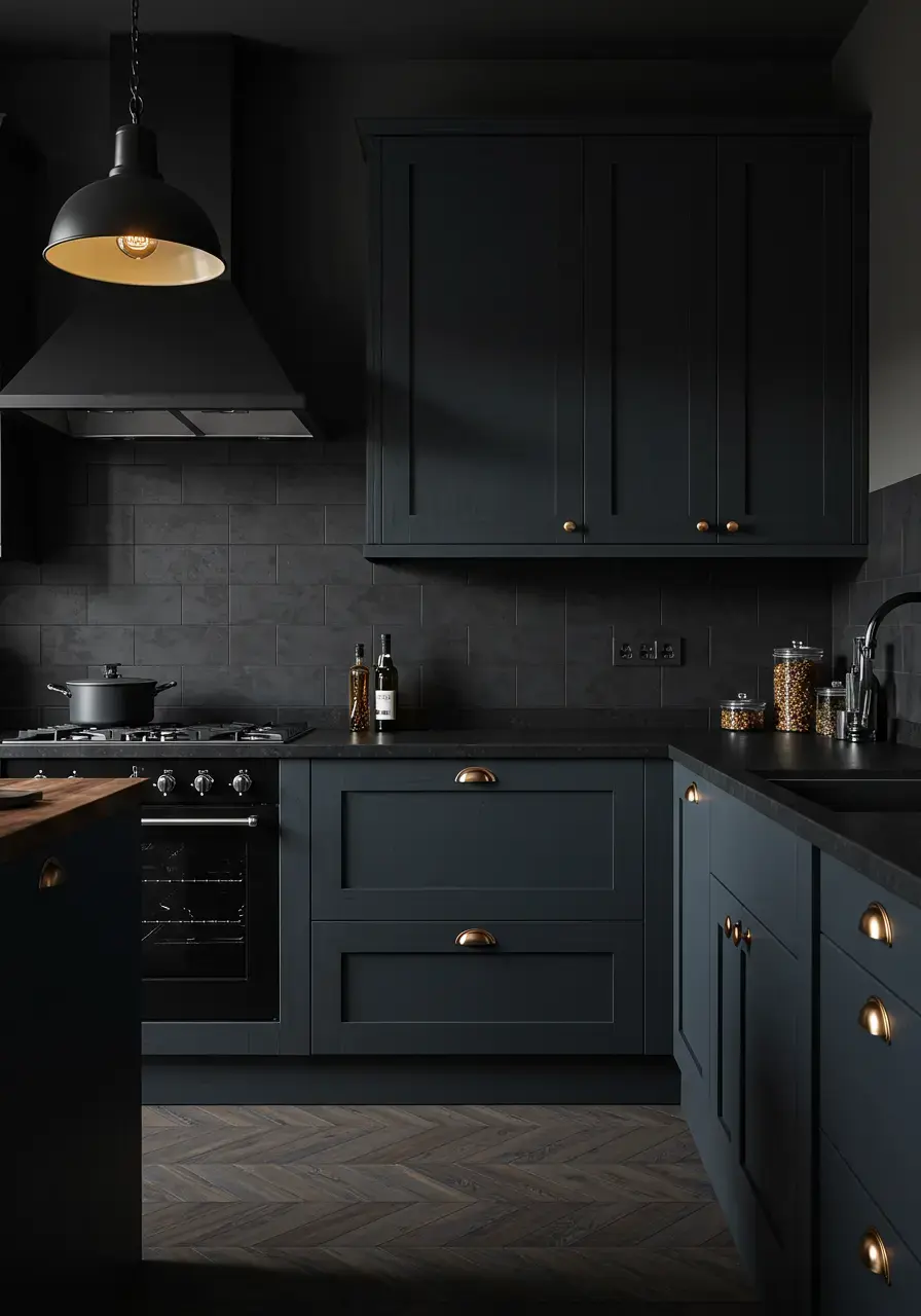 - Paint walls or cabinets in charcoal gray, black, or a deep navy.