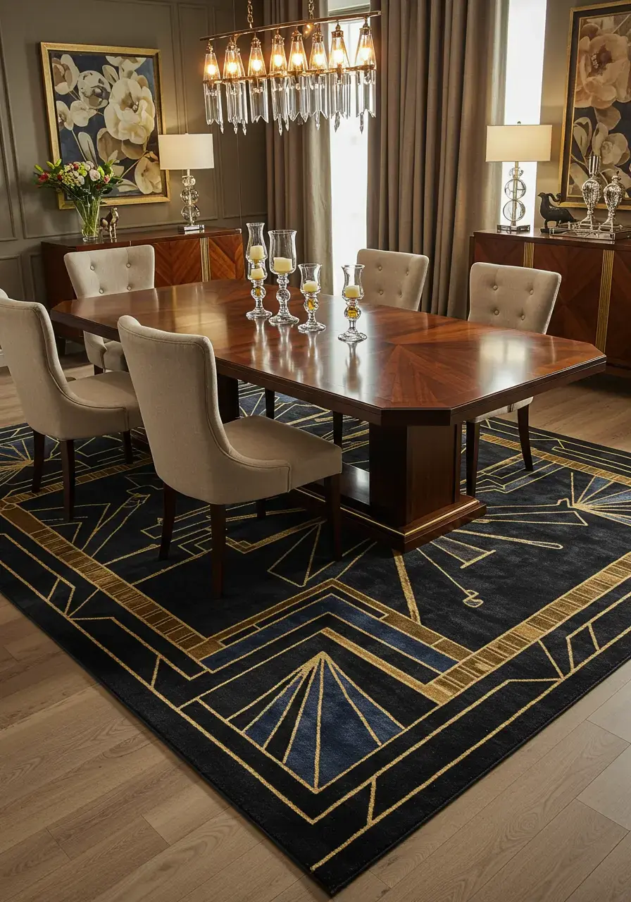 Bold Geometric Rugs for Your Art Deco Dining Room