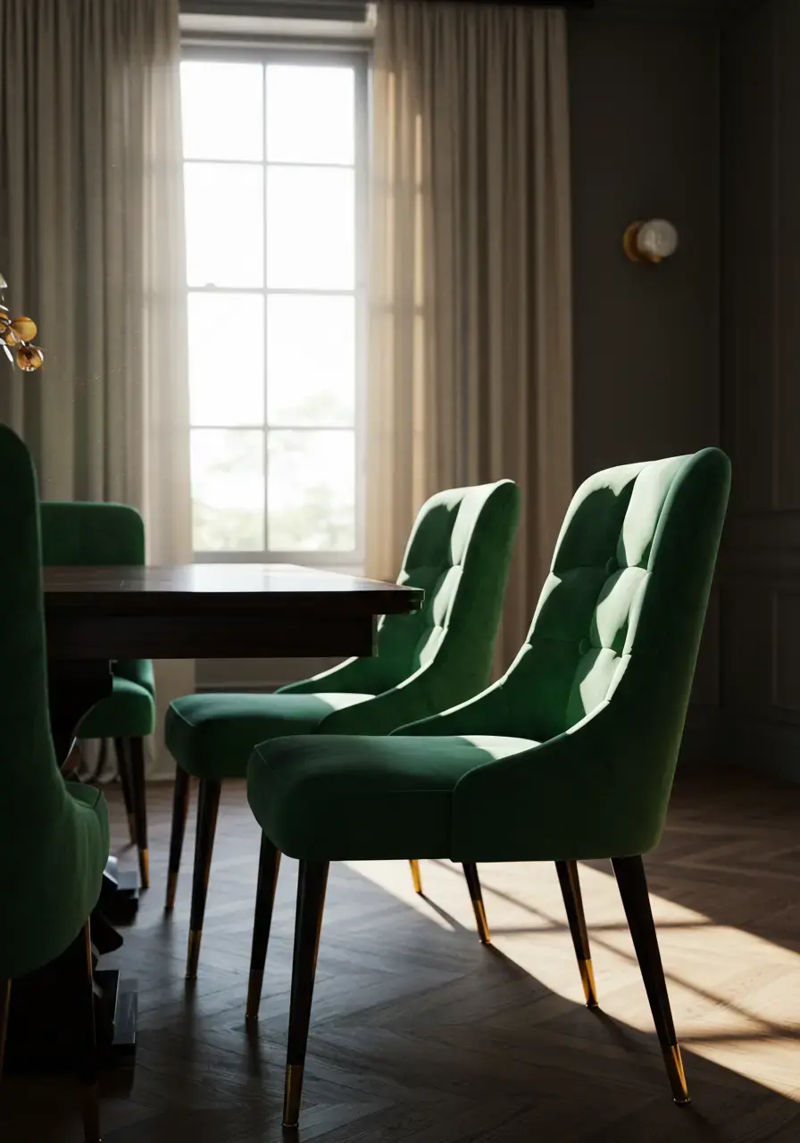 Talk about sinking into luxury! Velvet upholstered chairs are an absolute must for bringing that plush Art Deco glamour into your dining room. The way the light catches the fabric, the rich colors, the pure comfort – it’s simply divine. I went for deep emerald green velvet chairs, and they make every meal feel like a special occasion. They invite you to linger and enjoy the conversation.