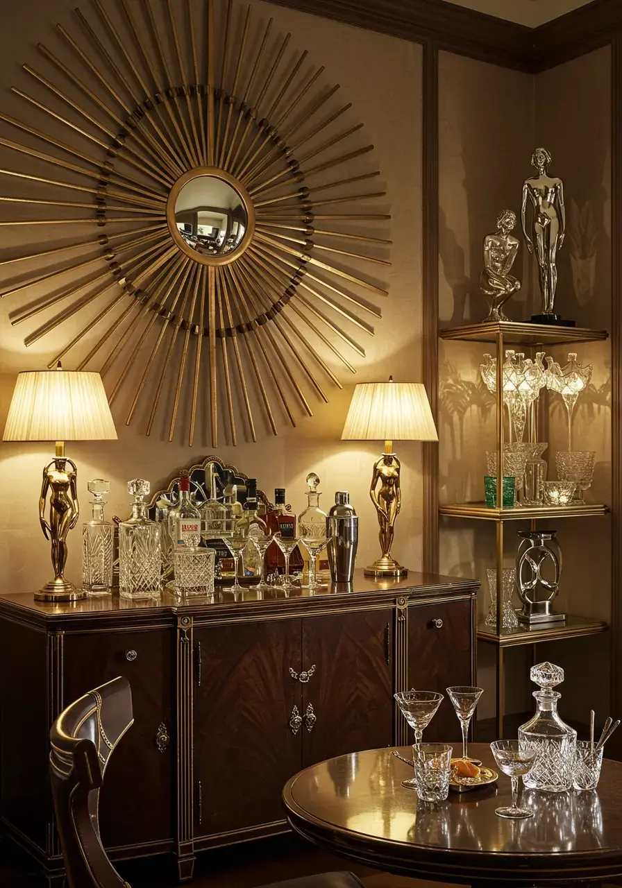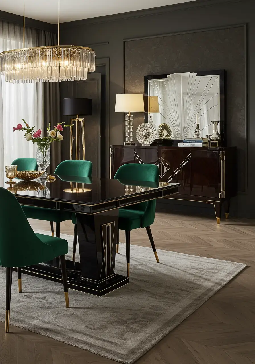 Elegant accessories add personality, enhance the luxurious aesthetic, and provide crucial finishing touches that complete the sophisticated look of your Art Deco dining room.