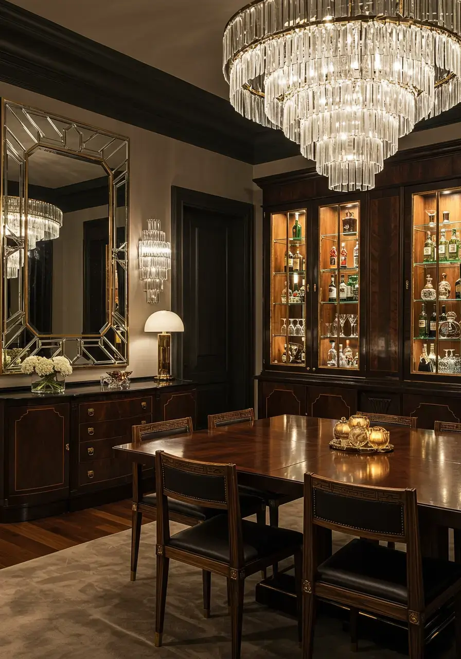 A well-executed focal point anchors your Art Deco dining room, creating visual interest, guiding the eye, and establishing a sense of grandeur and purpose within the space.