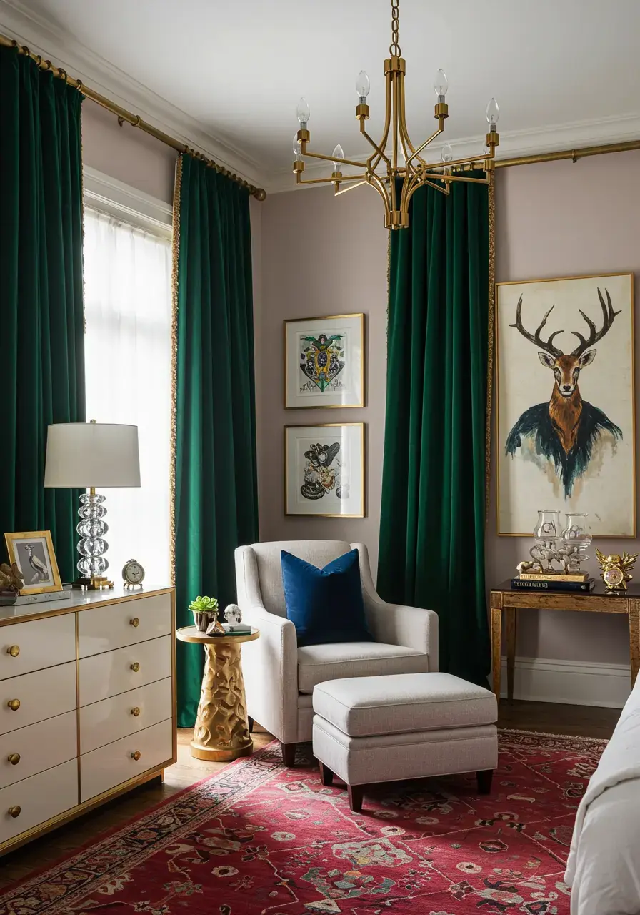 - Choose opulent fabrics such as velvet, silk, or faux fur for curtains, upholstery, or accent pillows.