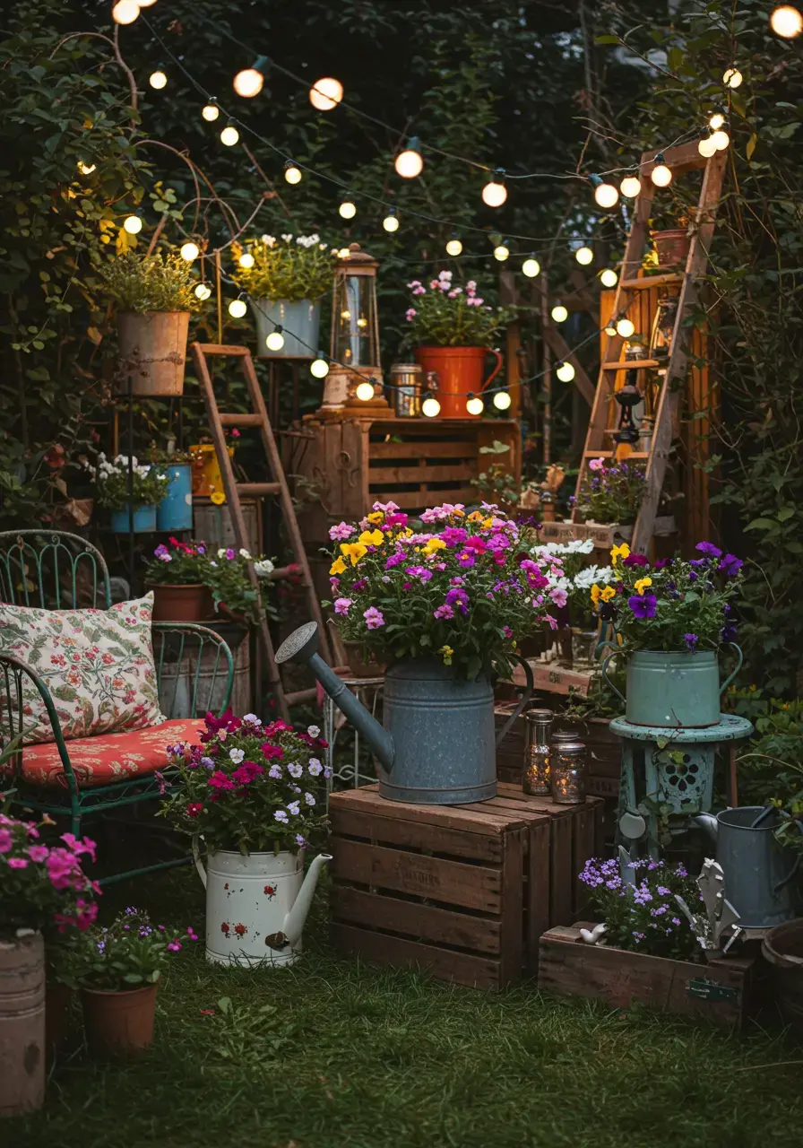 - Repurpose old furniture pieces, architectural salvage, or vintage garden tools as decorative elements.