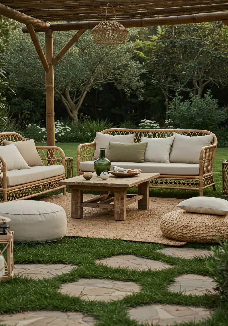 - Opt for furniture made from rattan, bamboo, or reclaimed wood.