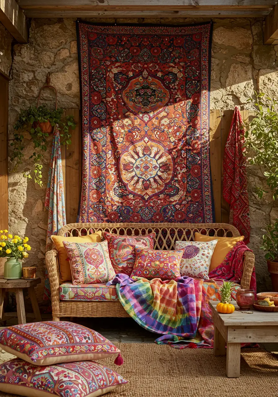 Textile art introduces softness, color, and a global, artistic touch to the outdoor space, making it feel more like an extension of your home’s interior. It adds a cozy, lived-in feel.