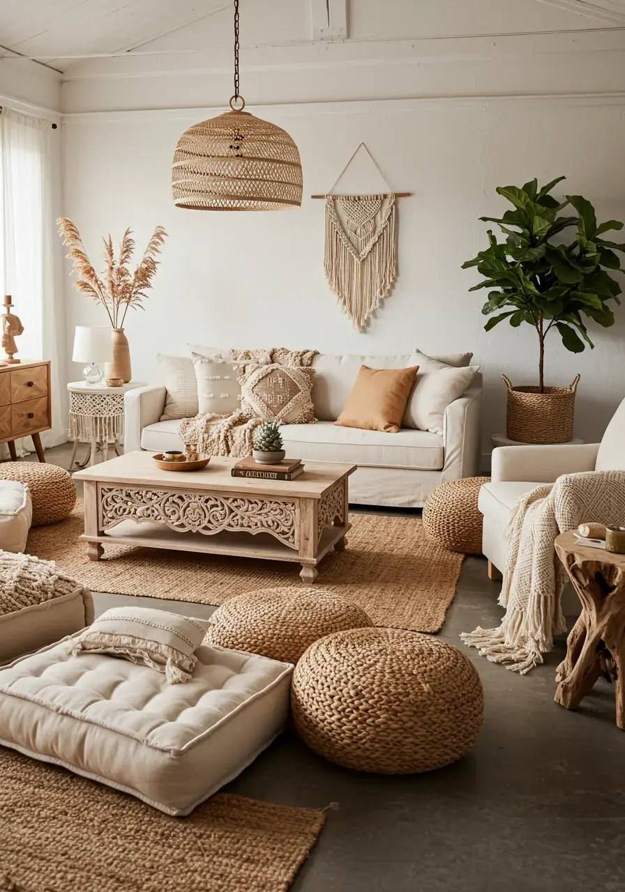 DIY macrame adds a unique, handcrafted touch, enhancing the authentic and artistic feel of your boho living room.