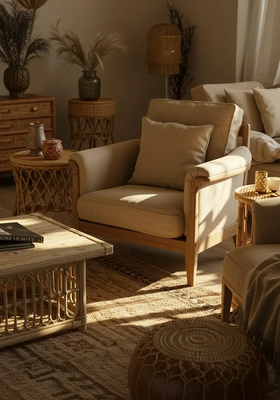 - Incorporate natural materials like rattan, bamboo, reclaimed wood, or jute in coffee tables, side tables, or accent chairs.