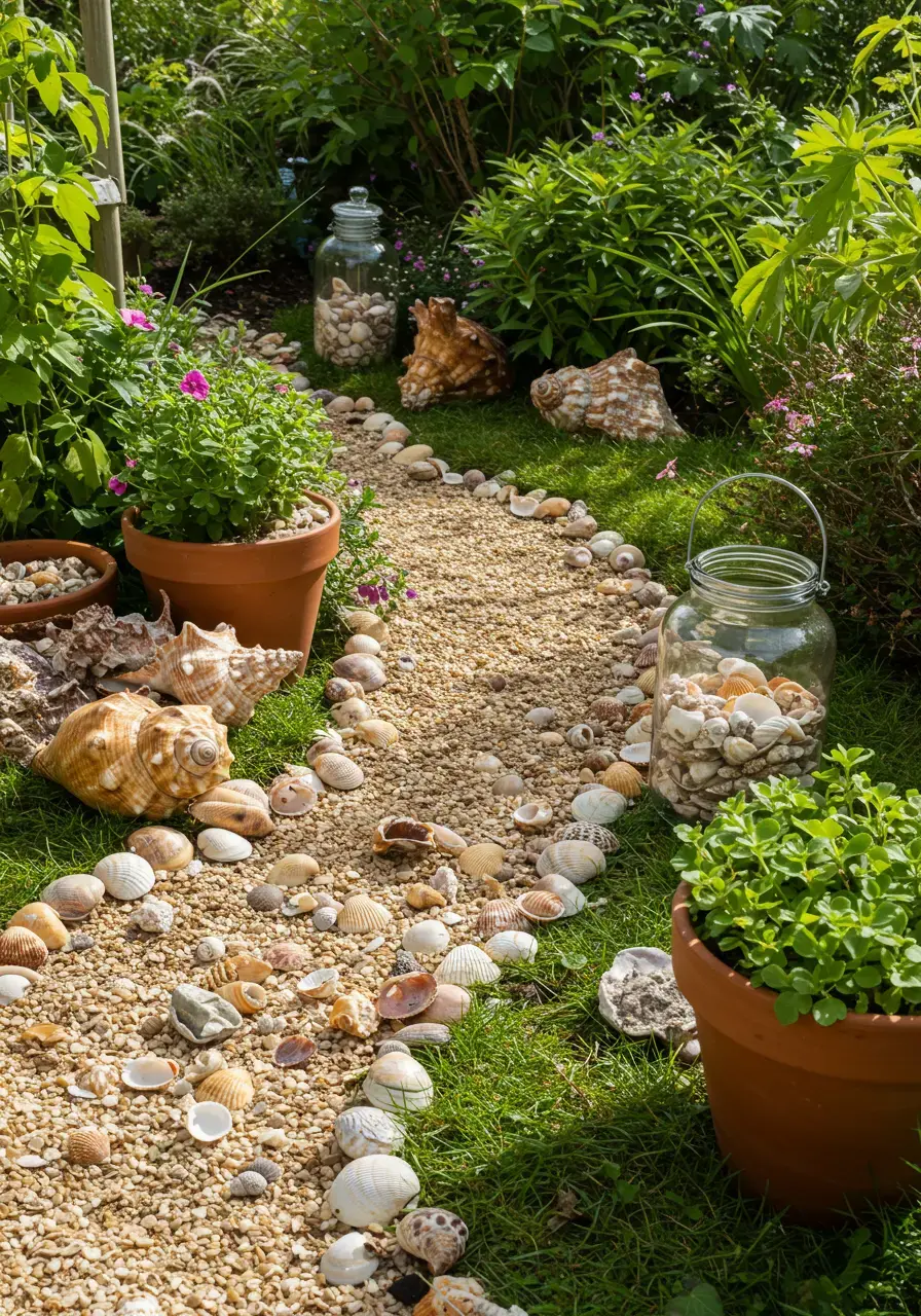 Adding seashells to your garden is such a simple yet effective way to bring in that beachy feel. I love how they catch the light and add little pops of pearly color. It feels a bit like scattering jewels in your green space.