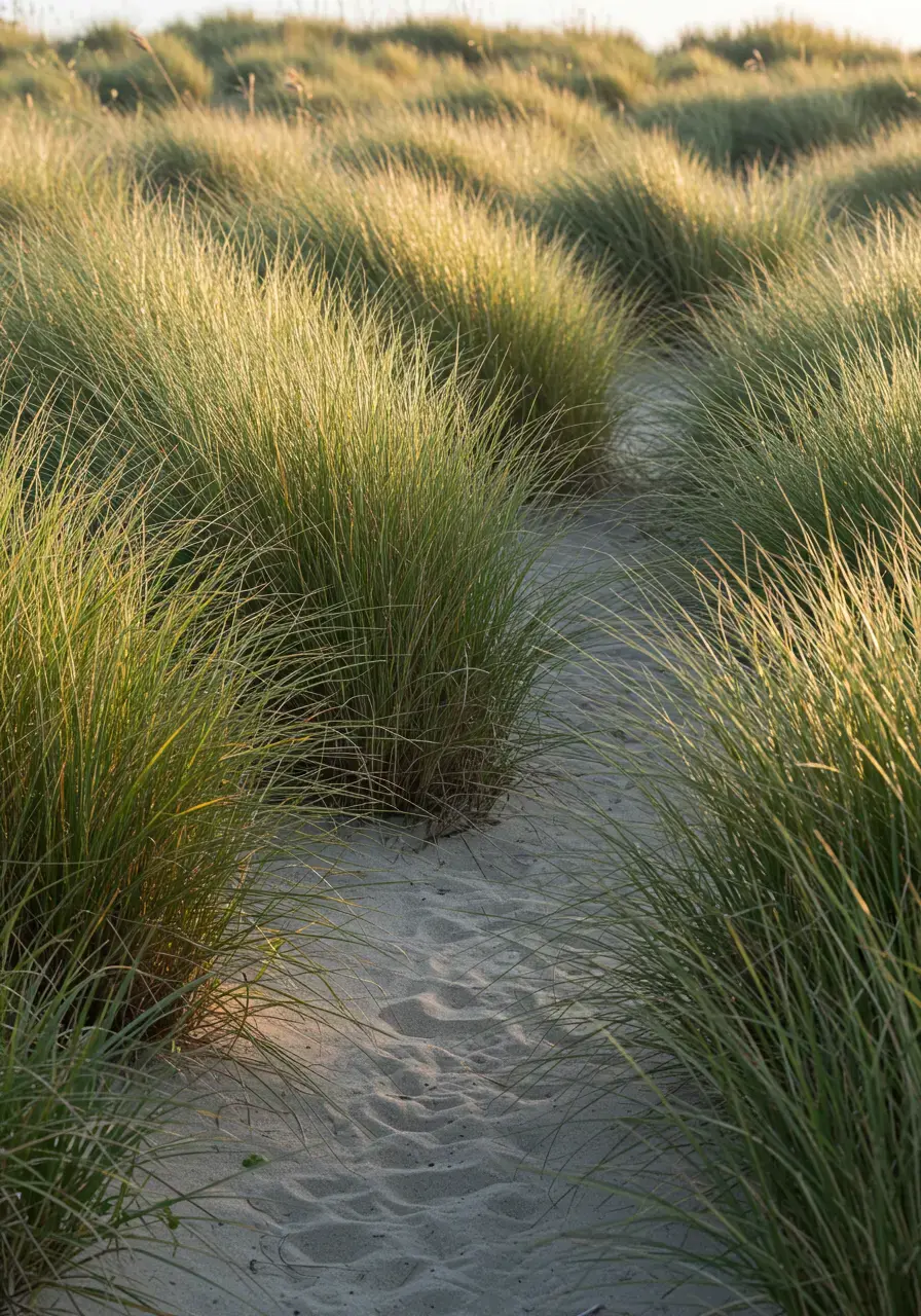Ornamental grasses create a sense of movement as they sway in the wind, mimicking the look of natural coastal dunes and adding soft texture and visual interest.