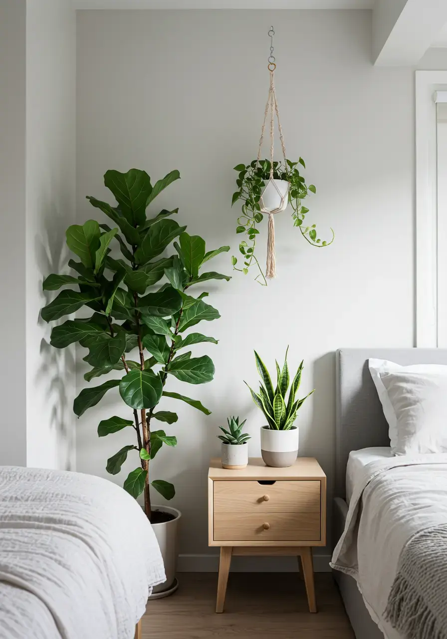 • Place a large statement plant like a Fiddle Leaf Fig or Snake Plant in a corner.