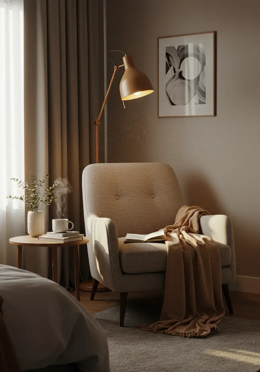 • Include a soft throw blanket and a good reading lamp to truly complete the cozy vibe.