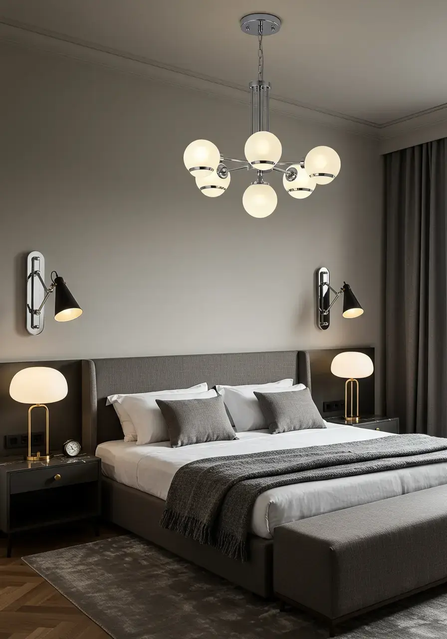 • Install a striking pendant light or chandelier above the bed or in the center of the room.